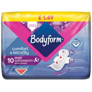 Bodyform Goodnight Maxi Pads With Wings 10pk.