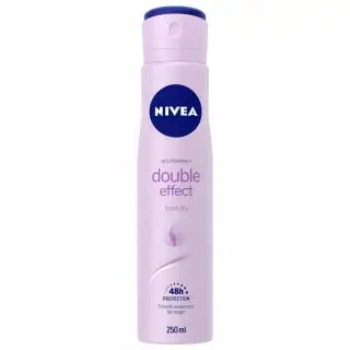 Nivea Double Effect Antiperspirant reliably protects you all day from perspiration and body odor and additionally slows the growth of your underarm hair, so you can shave less often and relieve your skin from irritation.